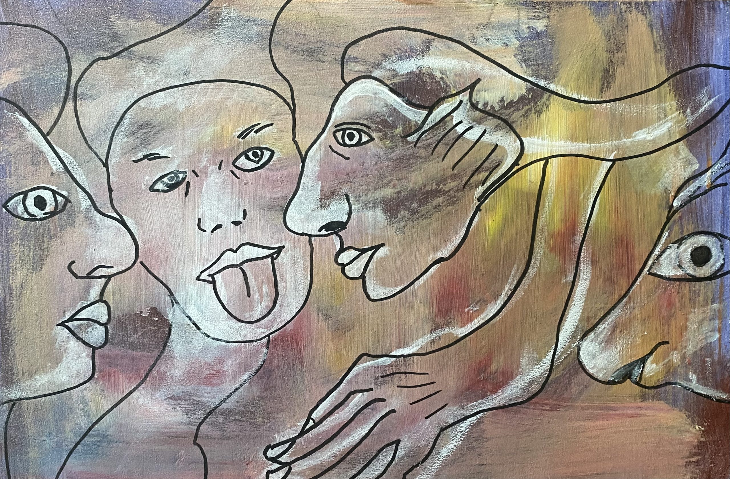Acrylverf op gerecycled hardboard.