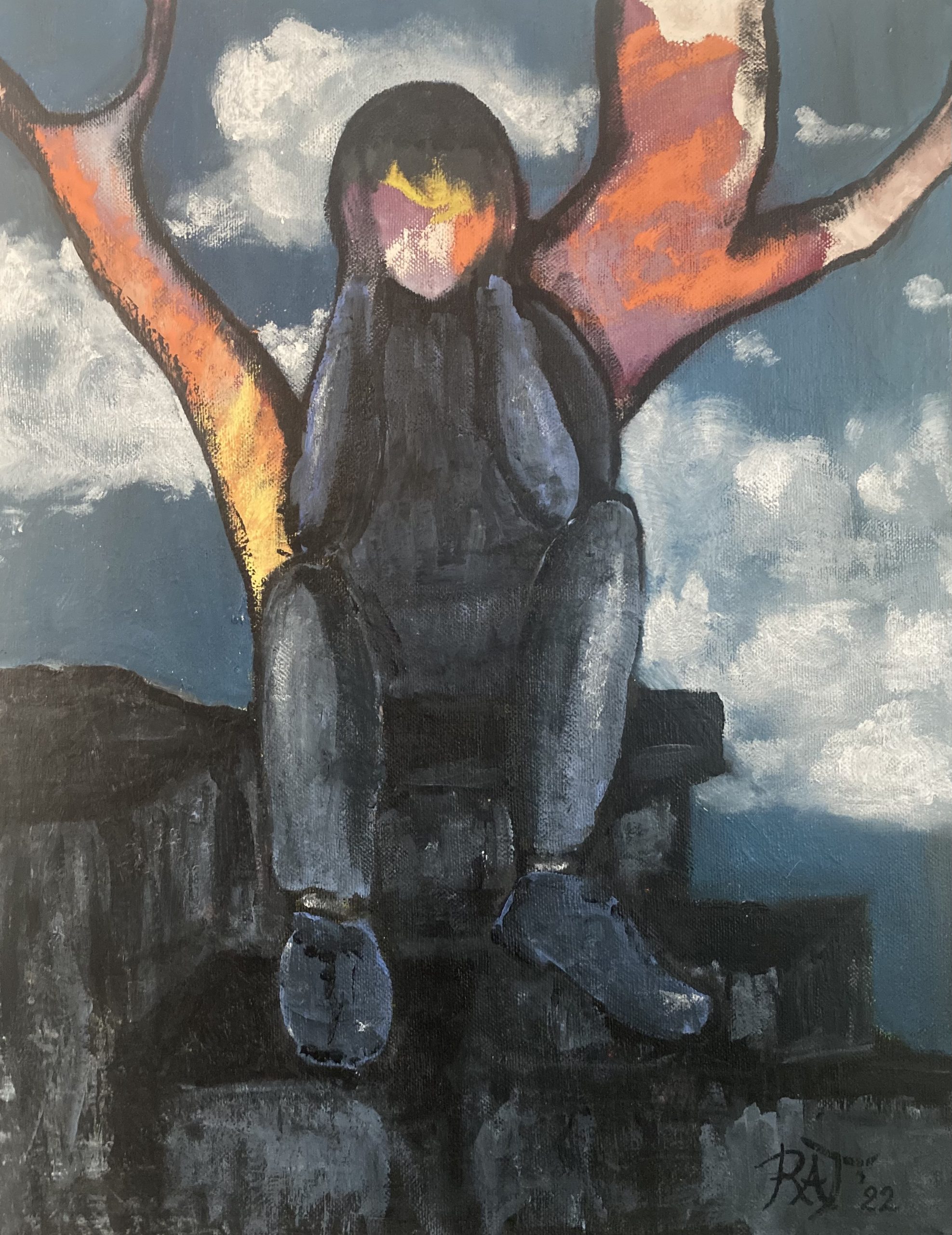 Geschilderd met acrylverf op jute, verlijmd op laminaat en vervolgens bevestigd op gerecycled pallethout.